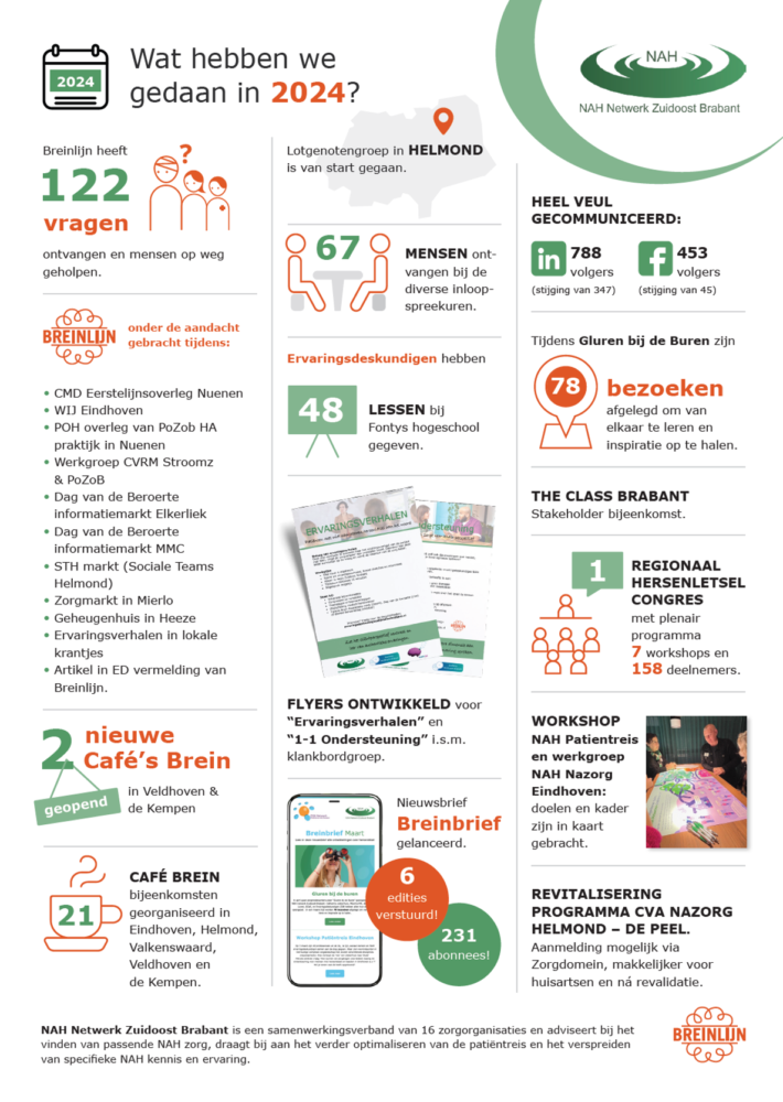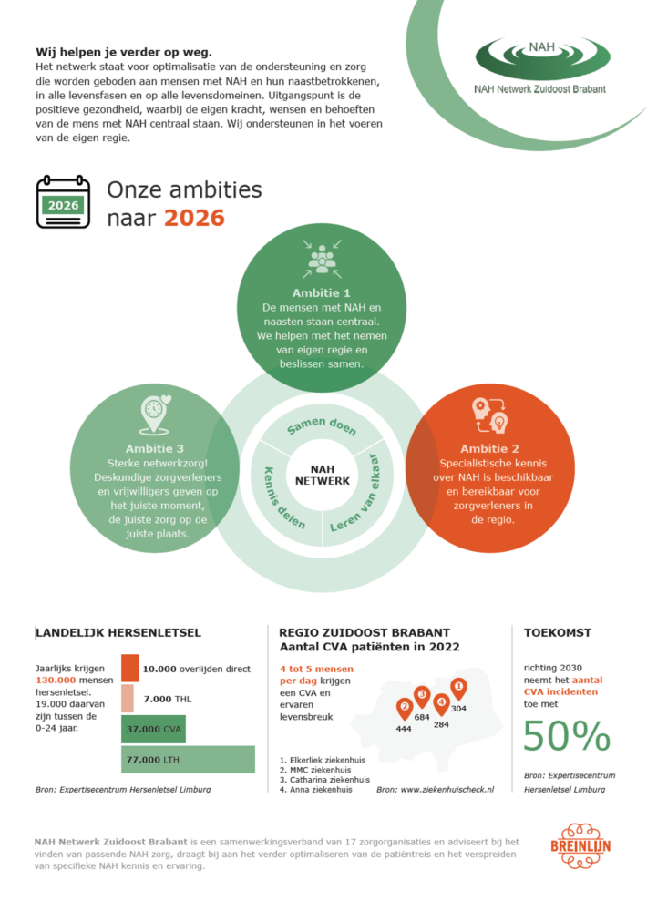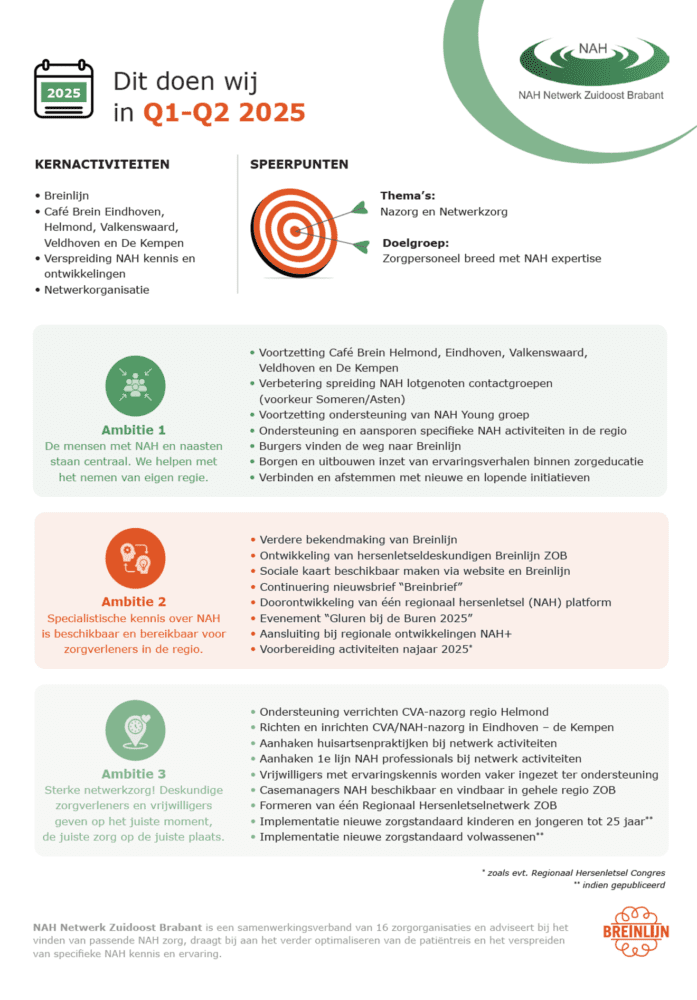 - Opstellen van en uitvoering geven aan het Meerjarenplan NAH netwerk Zuidoost Brabant.
